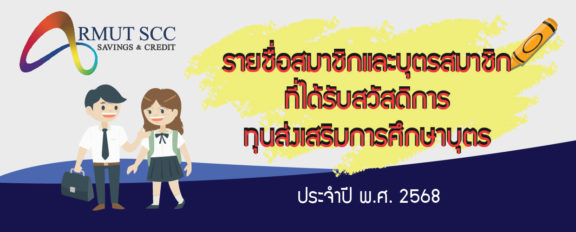 ประกาศรายชื่อสมาชิกและบุตรสมาชิก ที่ได้รับสวัสดิการ ทุนส่งเสริมการศึกษาบุตร ประจำปี พ.ศ.2568