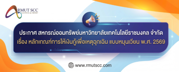 ประกาศ สหกรณ์ออมทรัพย์มหาวิทยาลัยเทคโนโลยีราชมงคล จำกัด เรื่อง เงินกู้สามัญโครงการสวัสดิการเพื่อการศึกษา 2026