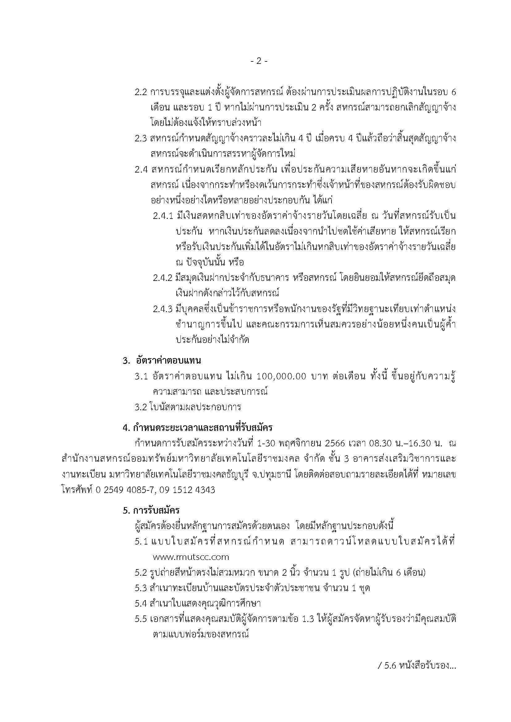 รับสมัครบุคคลเพื่อเข้ารับการสรรหาและคัดเลือกเป็นผู้จัดการสหกรณ์ออมทรัพย์มหาวิทยาลัยเทคโนโลยีราชมงคล จำกัด