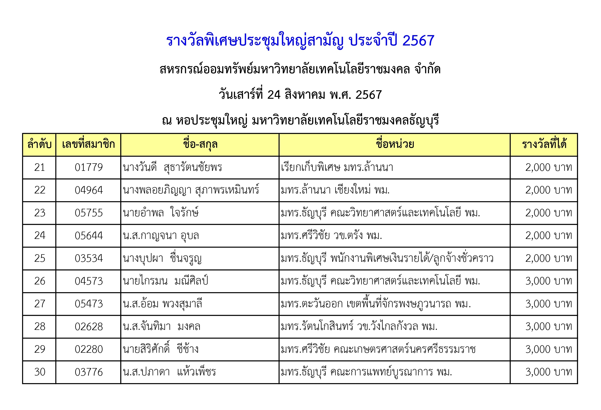 รางวัลพิเศษประชุมใหญ่สามัญ ประจำปี 2567