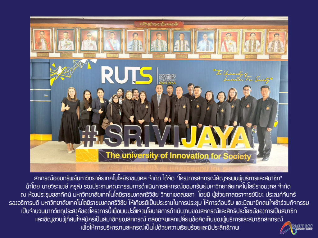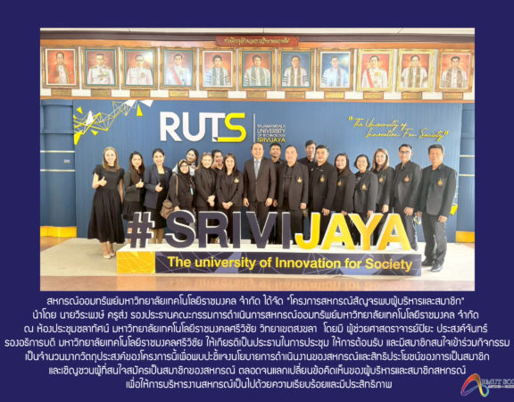 เมื่อวันที่ 20 กุมภาพันธ์ 2569 สหกรณ์ออมทรัพย์มหาวิทยาลัยเทคโนโลยีราชมงคล จำกัด ได้จัด “โครงการสหกรณ์สัญจรพบผู้บริหารและสมาชิก” นำโดยนายวีระพงษ์ ครูส่ง รองประธานกรรมการดำเนินการสหกรณ์ออมทรัพย์มหาวิทยาลัยเทคโนโลยีราชมงคล จำกัด ห้องประชุม Fish Tech มหาวิทยาลัยเทคโนโลยีราชมงคลศรีวิชัย วิทยาเขตตรัง โดยมี ผู้ช่วยศาสตราจารย์สิทธิโชค จันทร์ย่อง รองอธิการบดีประจำวิทยาเขตตรัง ให้เกียรติเป็นประธานในการประชุมให้การต้อนรับ และมีสมาชิกสนใจเข้าร่วมกิจกรรมเป็นจำนวนมาก